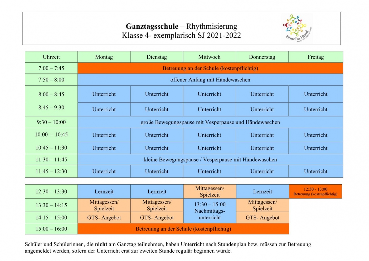 Hier finden Sie einen exemplarischen Stundenplan der vierten Klasse als PDF-Dokument.